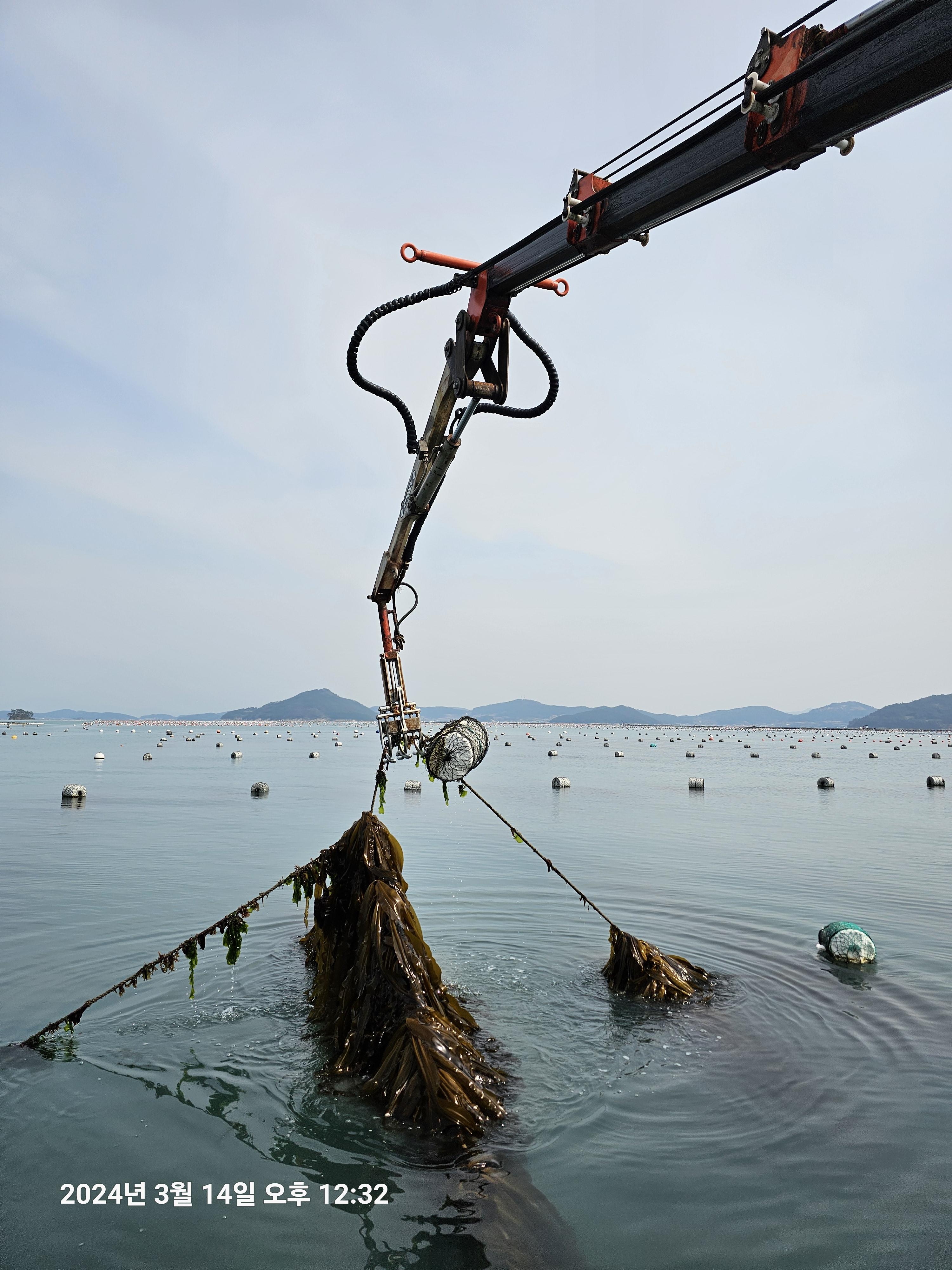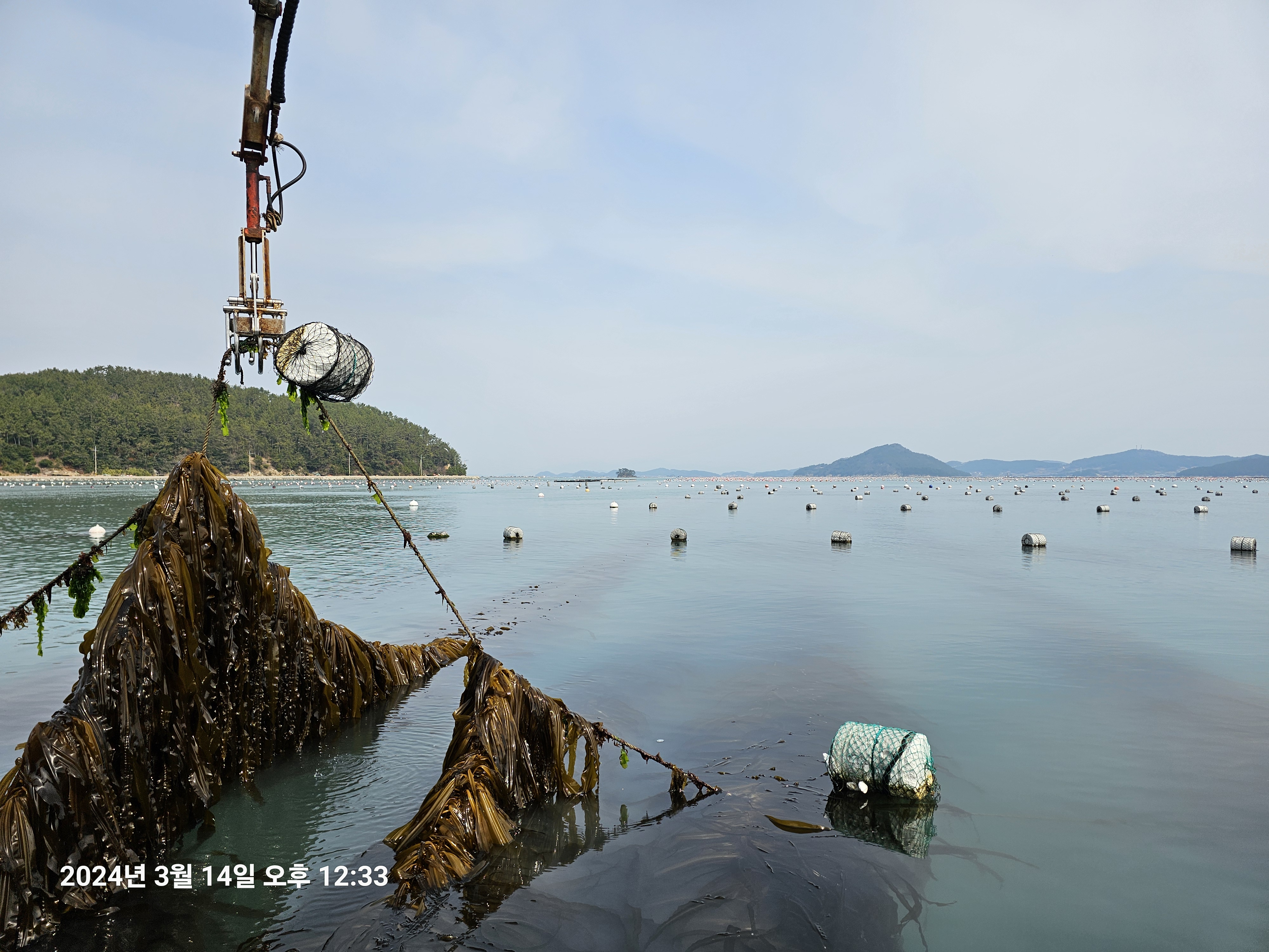 <양식 중인 다시마와 채취하는 방법을 선장이 보여준다>