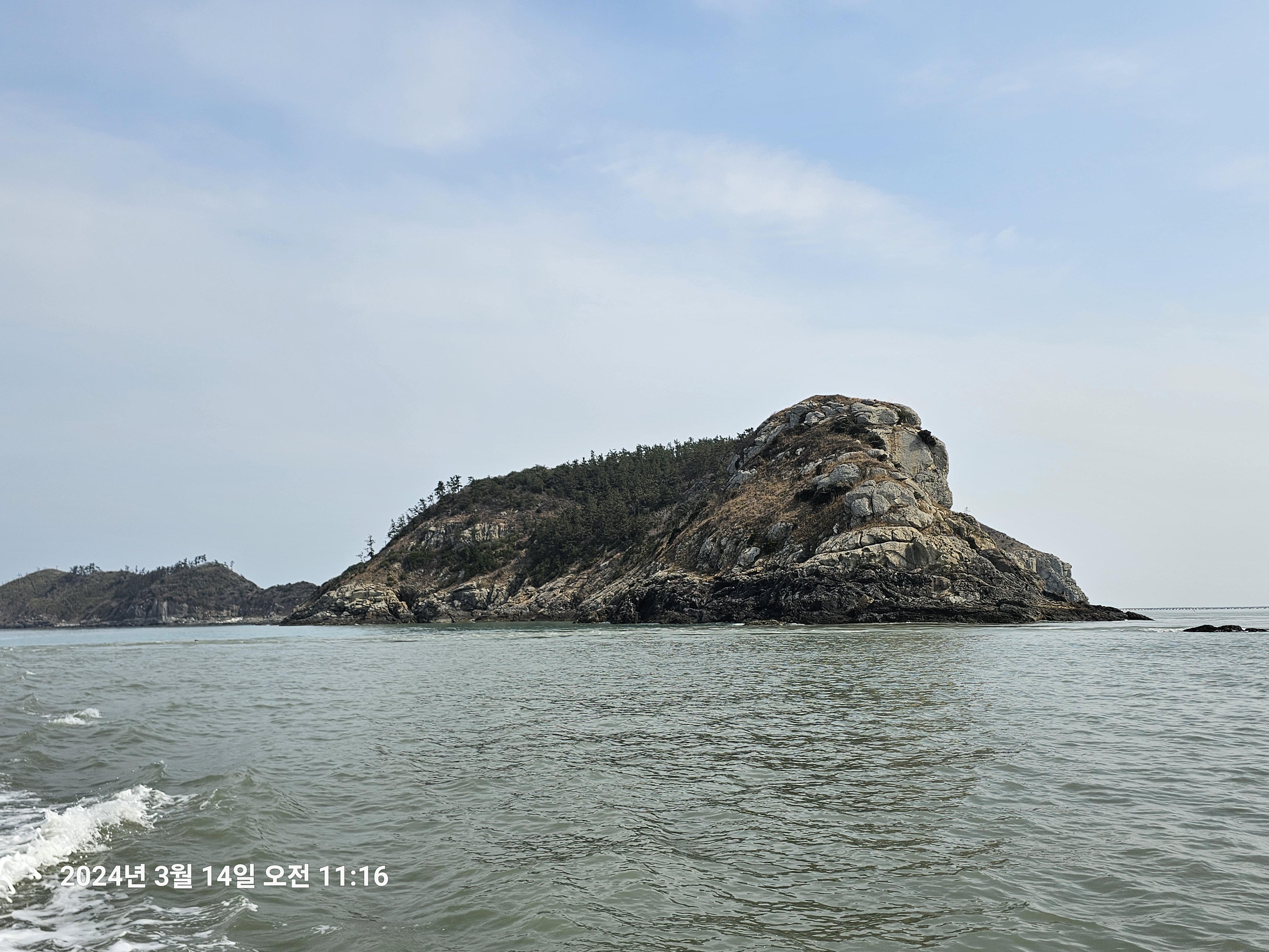 <넙도가 가까워지고 있다~~ 등대도 보이고>
